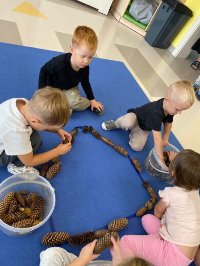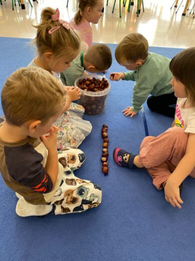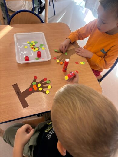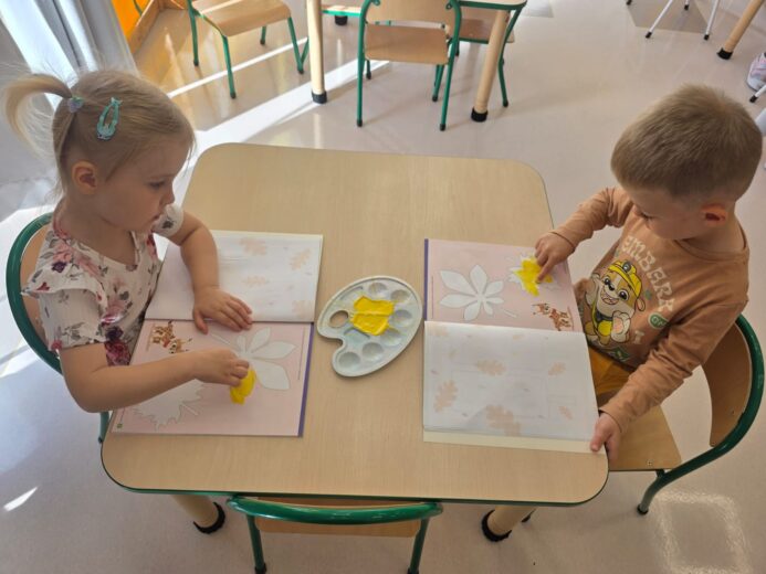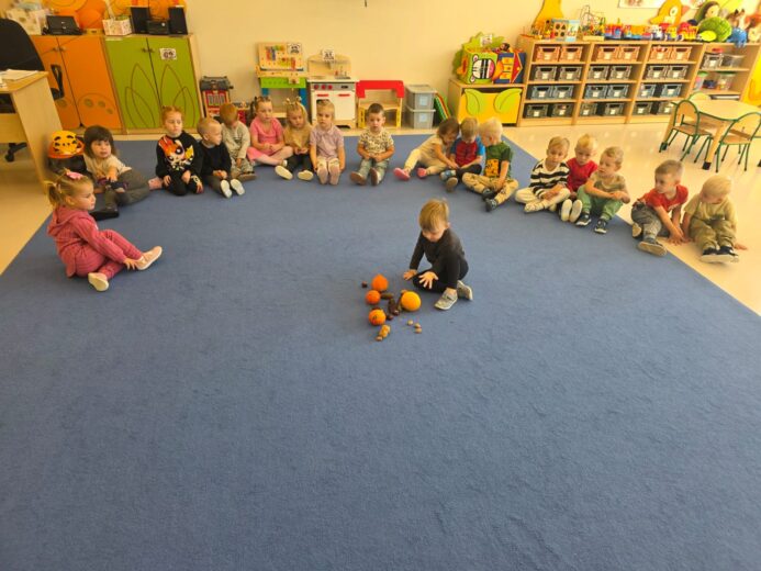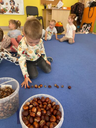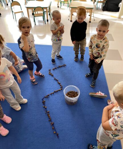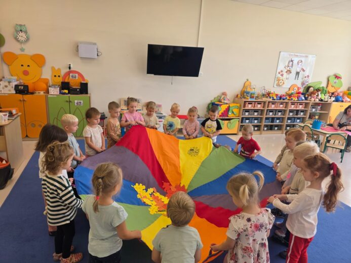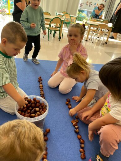 W tym tygodniu nasze przedszkolaki powitały nową porę roku — jesień 🍁.Wyruszyliśmy więc na długie jesienne spacery, korzystając z pięknej słonecznej pogody, aby odnaleźć pierwsze opadające liście, lśniące kasztany, pękate żołędzie oraz dekoracyjne szyszki, które już zdobią nasze przedszkolne sale 🌰🍁🦔. Przedszkolaki z dumą uczestniczyły również w jesiennych zabawach, tworząc z paniami kolorowe prace plastyczne, utrwalając znajomość pierwszych oznak jesieni, a także poznając nowe piosenki i wierszyki związane z tą tematyką 🍁🦔🌰.Wraz z nadejściem jesieni w naszym przedszkolu pojawiły się nowe dekoracje, które można zobaczyć przed wejściem do przedszkola, w przedsionkach, na szatni, a także przy każdej przedszkolnej sali. Serdecznie zachęcamy do odwiedzenia tych miejsc i spojrzenia nie tylko na kolorowe dekoracje, ale również na piękne prace naszych kreatywnych przedszkolaków! 🦔🌰🍁