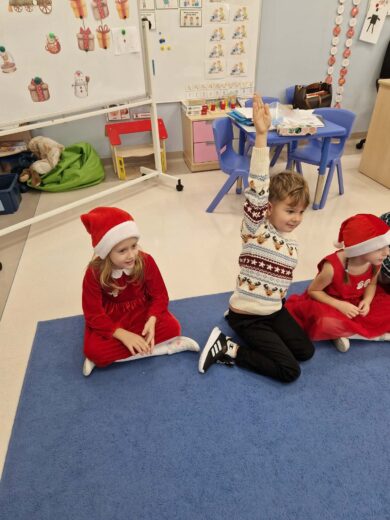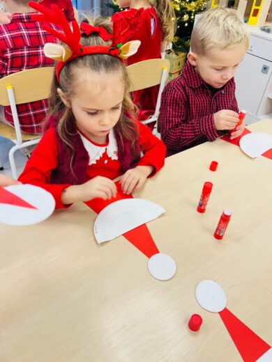Dzieci spędziły dzień bawiąc się w mikołajkowe zabawy, śpiewając świąteczne piosenki, a także wykonując piękne prace plastyczne dla Mikołaja w podziękowaniu za słodkie upominki.