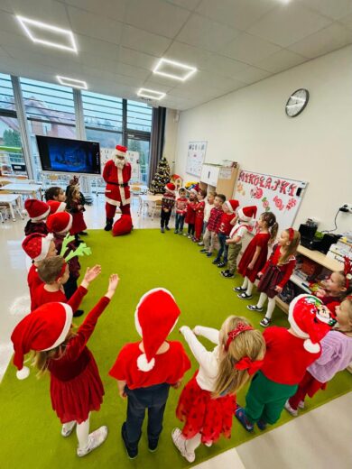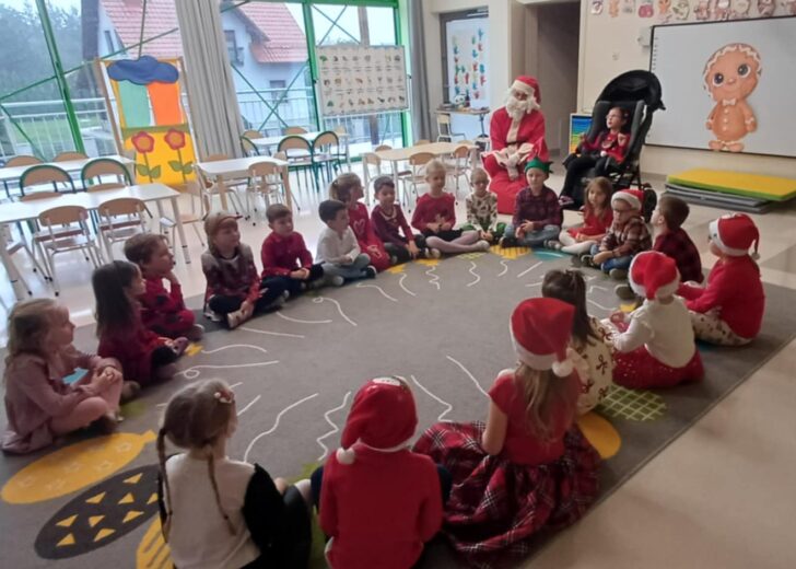 I dziś do naszego przedszkola z wielkim worem pełnym prezentów przybył z dalekiego bieguna północnego Mikołaj! 🎅 Dzieci powitały go wierszykami oraz piosenkami, które zaśpiewały z radością, by godnie go powitać! 🔔