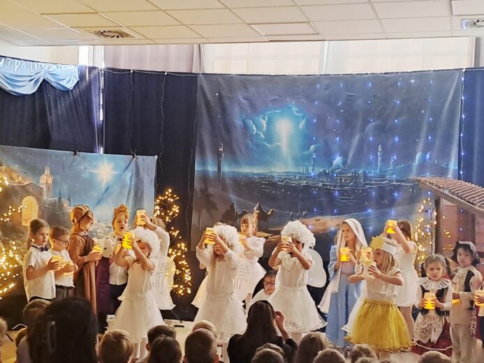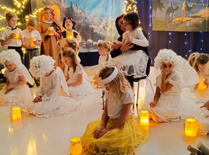 Dzieci z grupy „Tropiciele” z wielkim zaangażowaniem i radością przedstawiły wzruszające Jasełka, w których dziecięcymi sercami opowiedziały historię narodzin Dzieciątka Jezus. Każde słowo, gest i uśmiech niosły ze sobą ciepło, miłość i świąteczną nadzieję, poruszając serca wszystkich obecnych. Był to wyjątkowy moment pełen emocji, który na długo pozostanie w pamięci.🌟💖