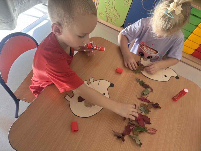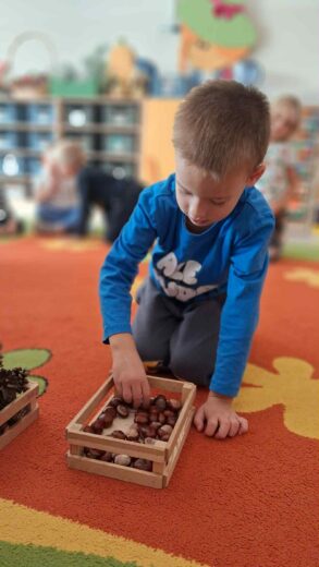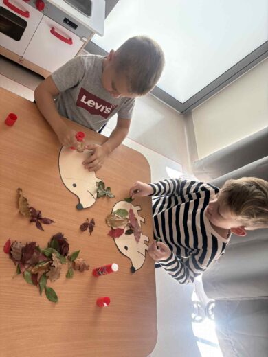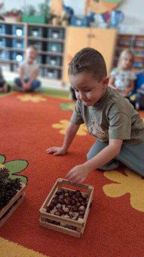 – Jesienne zabawy z kasztanami i praca plastyczna „Jeżyki”