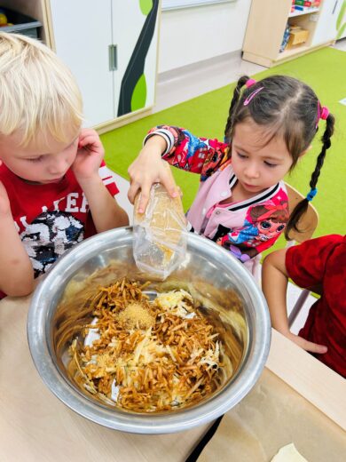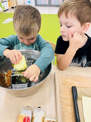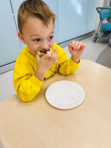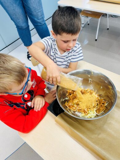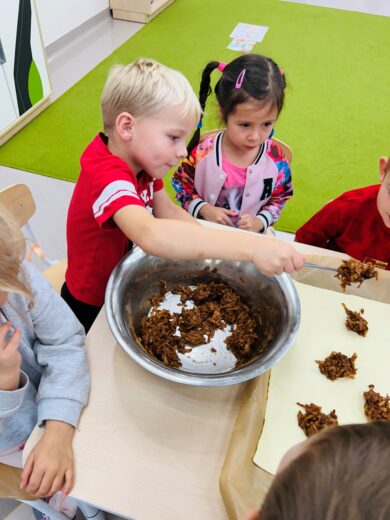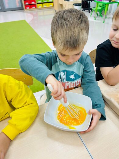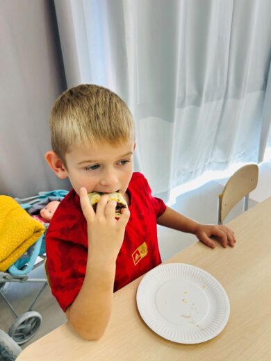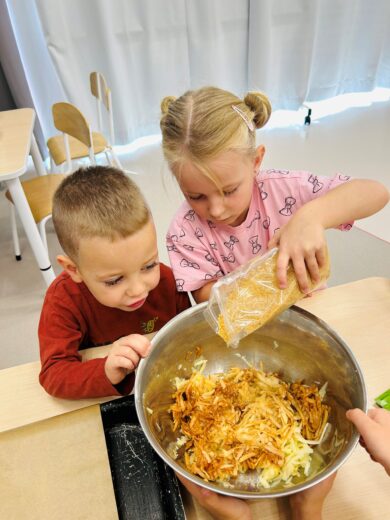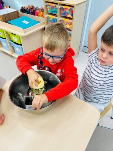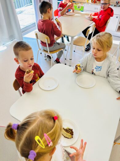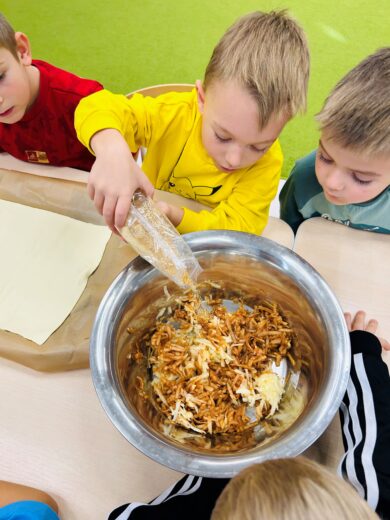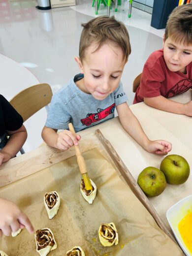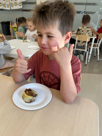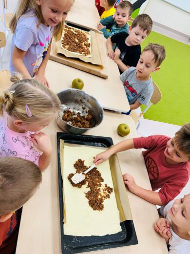 Zwieńczeniem naszego jabłkowego święta były warsztaty kulinarne – razem przygotowaliśmy pachnące cynamonem bułeczki z jabłkami, które nie tylko wspaniale smakowały, ale i cudownie wypełniły zapachem całe przedszkole.